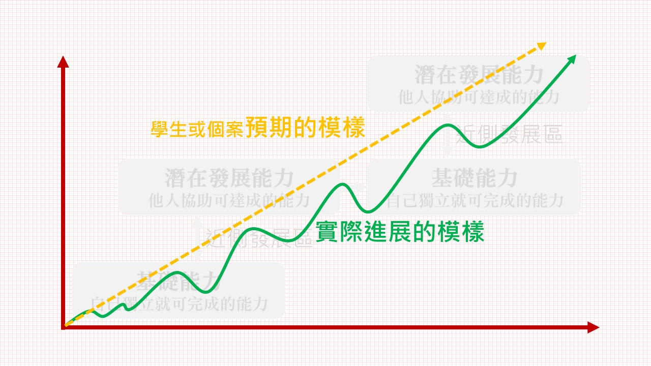 心理學家Vygotsky以「近側發展區(the zone of proximal development, ZPD)」的概念,來闡述學習歷程中相互調整的動態本質,依據近側發展區的概念延伸而來的鷹架作用(scaffolding),則說明教師與學生在教學互動過程與調整的重要性。