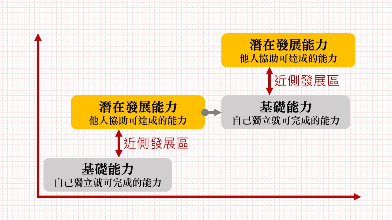 心理學家發現,每個人的基礎能力,可以透過教育訓練,達到另一個層次;而達到另一個層次,再透過另一次的教育訓練,會再讓自己繼續往上攀升;這個歷程稱為鷹架作用。 |