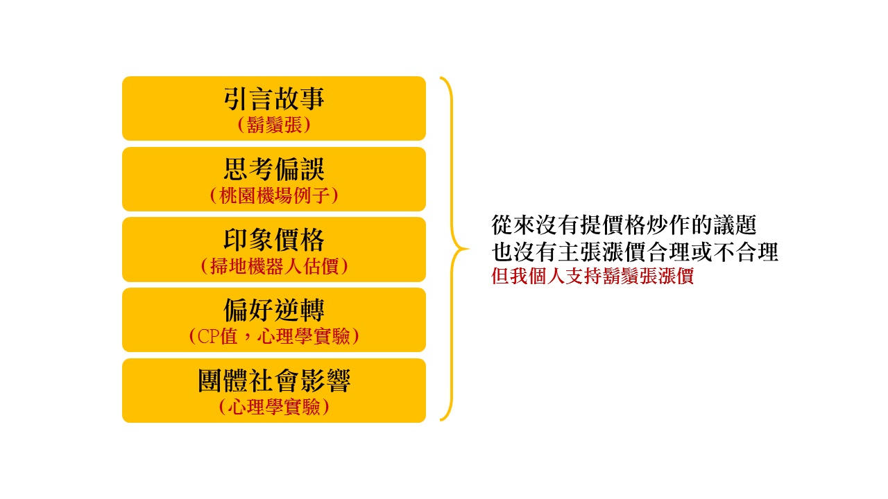 這篇文章從頭到尾都沒有評論漲價的合理性,僅是透過這個故事來詮釋心理學的現象。不過我自己也支持鬍鬚張漲價,很多人都不知道鬍鬚張也是有本事把店開到國外的產業。