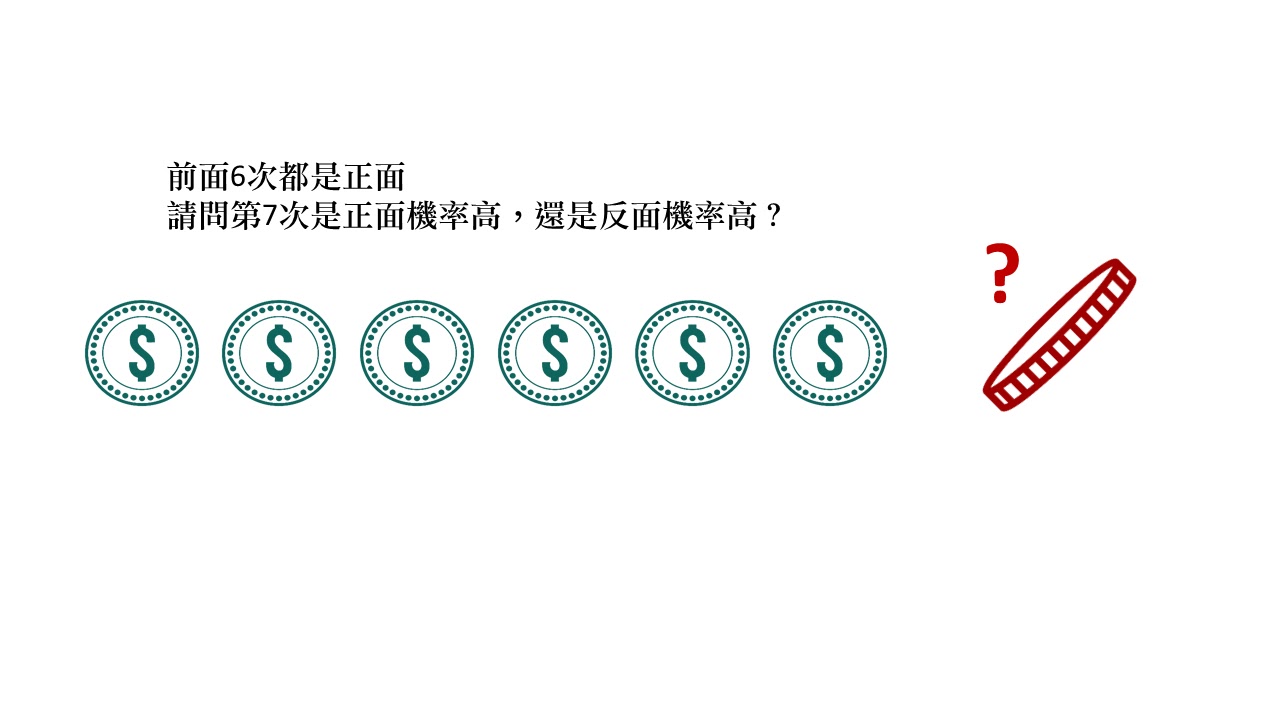 很多人認為拋一枚均勻硬幣,如果前六次的結果都出現正面,那麼第七次很大機會是反面。因為這個結果「感覺」比較正常,但事實上,每次拋硬幣的結果都是獨立的,不論之前的結果如何,下次的結果都是半數機會正反。