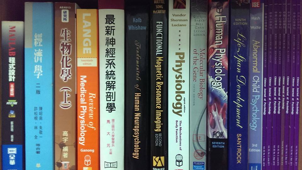 這是我其中一個心理學的書櫃,心理學相關書籍的格子大概有八個;然後還有原文的。