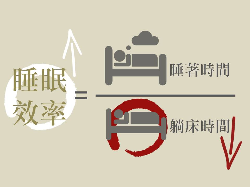 另外一種提升睡眠效率的方法,就是減少「分母」。減少的是躺在床上卻「沒有」睡著的時間,不是減少在床上睡著的時間唷!簡單地說,就是不要你明明睡不著了,還要硬躺在床上。