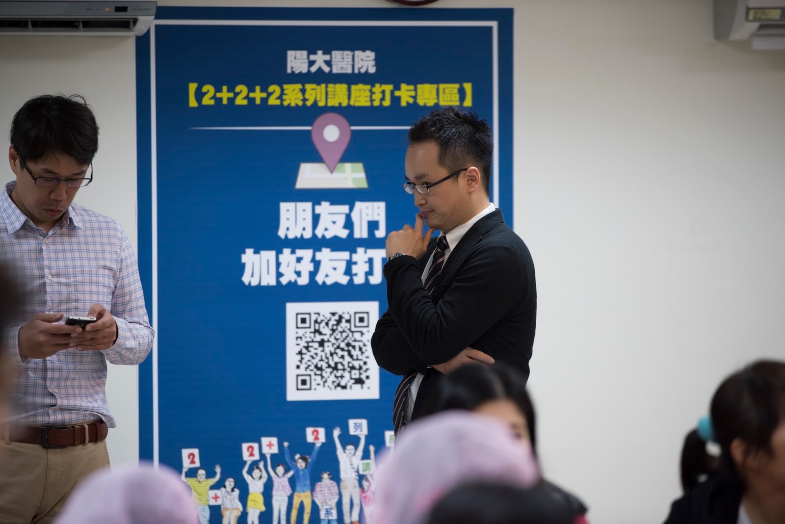 我以為院內的演講,就只會做出一般般的海報,但國立陽明附醫的海報居然是精心設計過的;讓講師備感到尊重呀!難怪有人說:「你把他當一回事,他就把你當一回事」。