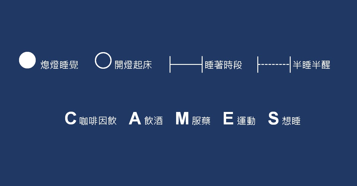 其實,睡眠日誌沒有你想像中的複雜,只運用幾個「符號」,而且只需憑前一晚的「約略印象」填寫即可。我們就來介紹幾個常見的符號吧!