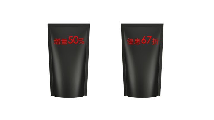另外,如果你的產品對消費者而言是陌生的時候,那麼用什麼樣的優惠對消費者而言根本就不在意,所以就不太會想要去換算;但是如果要吸引消費者多注意一下,也可以縮小單位,比如增量500克、增加試用500毫升,就看起來好像「數量」很大。